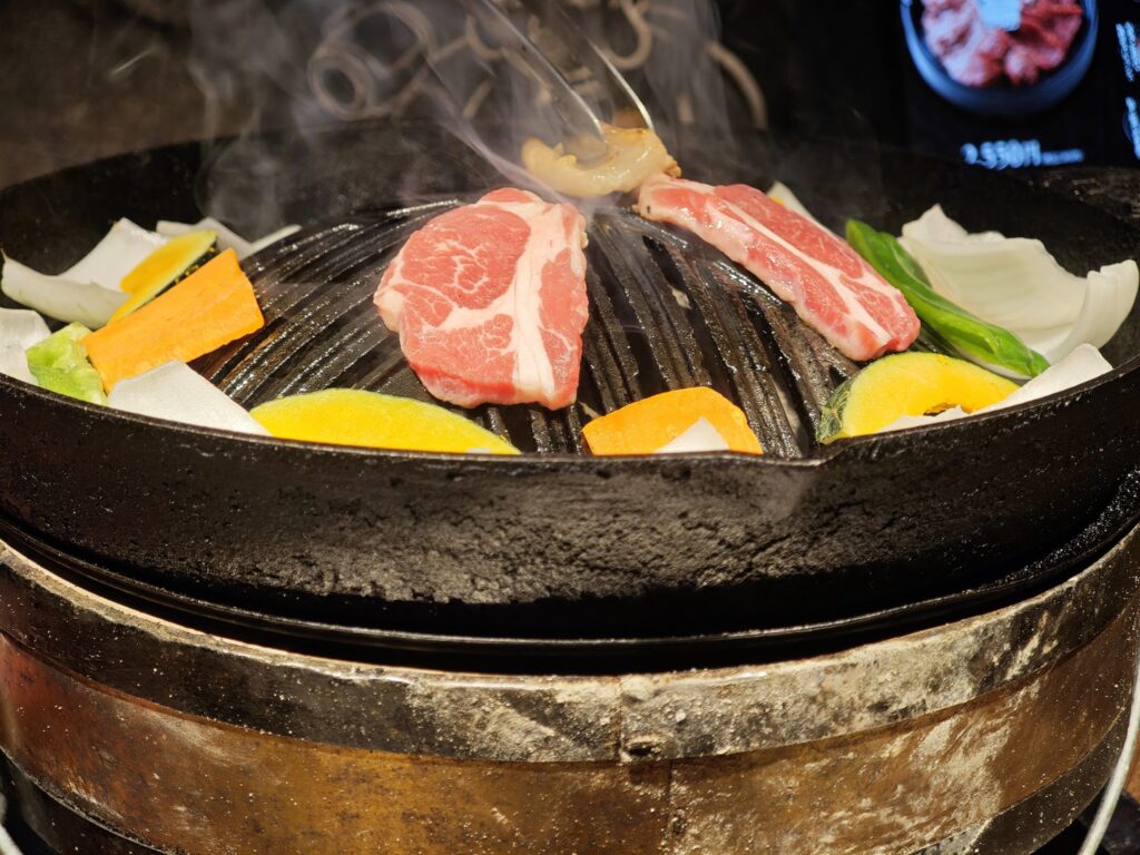 それはそうとジンギスカンを食べます。ジンギスカンってタレに漬けたラム肉を野菜といっしょに焼くスタイルが一般的ですけど、最近は味付けしていない生のラムを焼いてタレにつけて食べるような、素材の味を活かしたスタイルが流行ってる気がします。