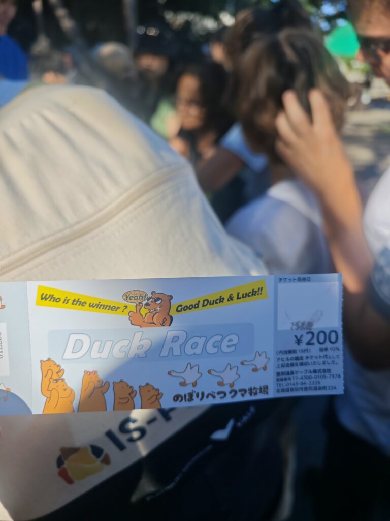 200円で馬券を買うことができて、当たると粗品をもらえるらしいです。みなさんだったらどのアヒルに賭けますか?