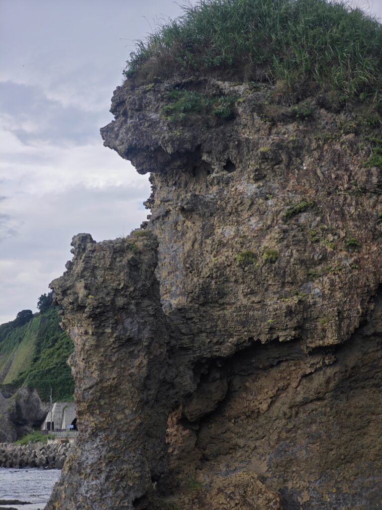 案内の看板には「海に食べ物を取りに来た子熊が足をすべらせて海に落ちてしまい、しかも助けようとした親熊も海に落ちてしまい、一部始終を見ていた海の神様は親子の愛に心を打たれて、熊をすくい上げて愛の姿をそのままに岩に変身させた」とか書いてありました。