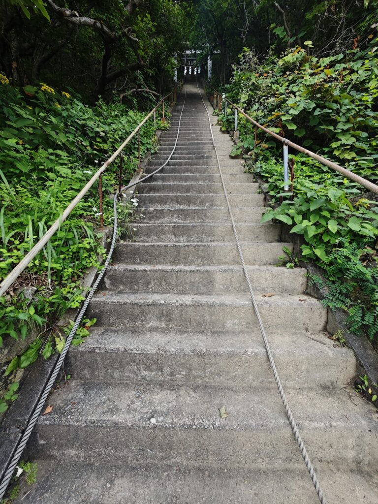 太田山神社にやってきました。日本一過酷な神社とか言われている場所です。階段が急すぎてロープが設置されています。