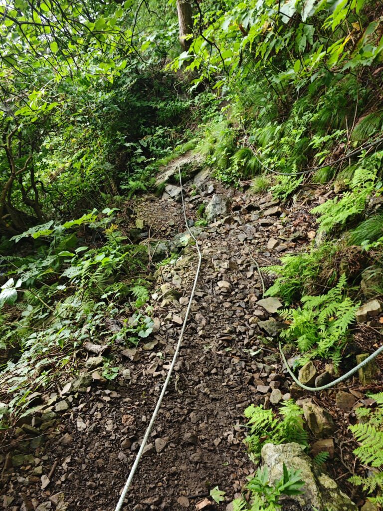 階段は5分くらいで終わってしまい、そこからはひたすら登山です。1時間くらい歩くと、いよいよガチの鎖場があらわれました。