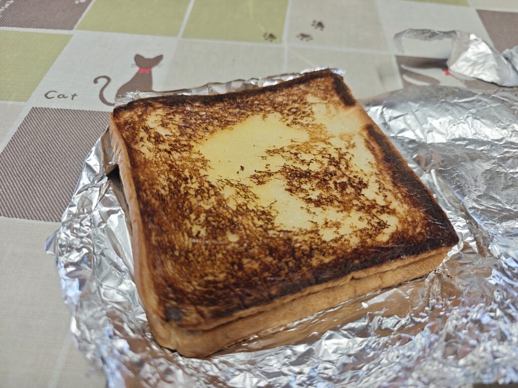 翌朝の朝ごはんにトーストサンドを食べました。おいしかったです。