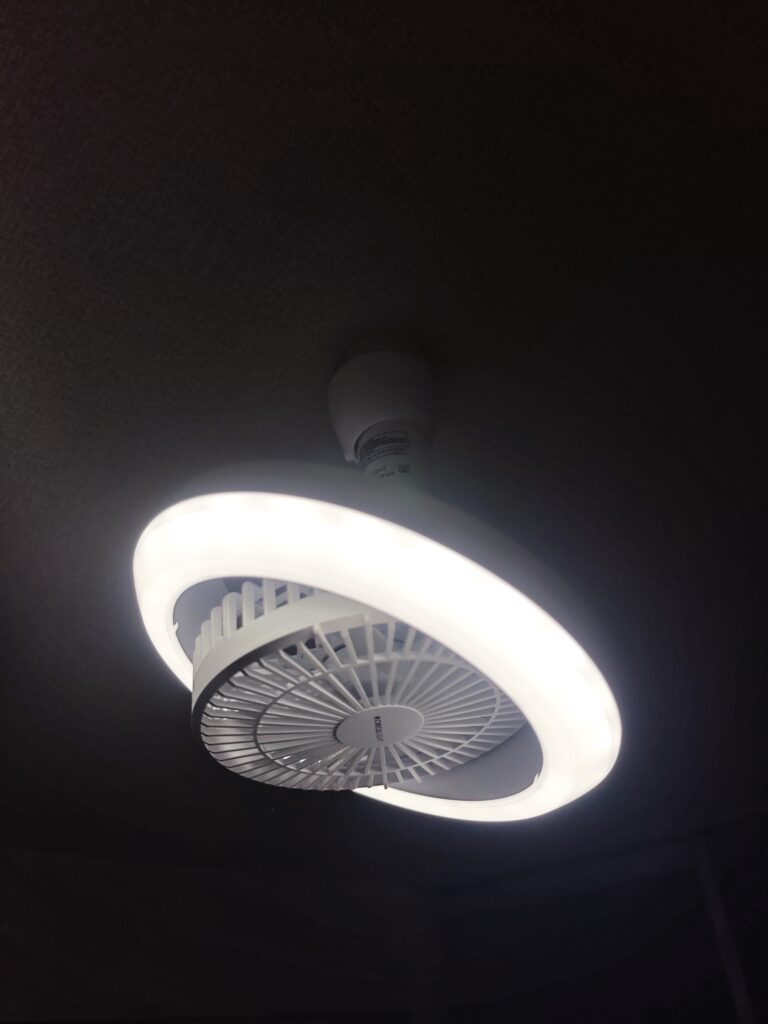天井にぶら下げるライトに扇風機をただ合体させただけの謎の家電なんですが、これが意外と痒いところに手が届きつつも、新たな痒いところを生み出す怪作でした。