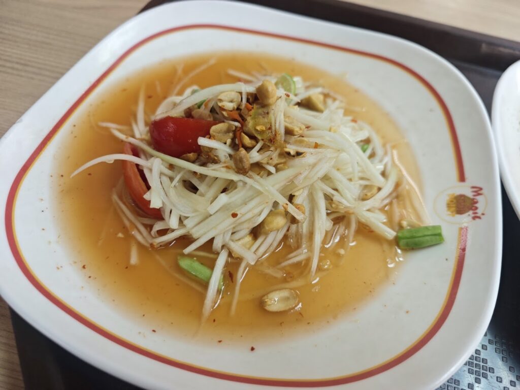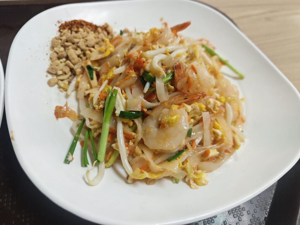 今回はソムタム(青パパイヤのサラダ)とパッタイクン(タイ風エビ焼きそば)を食べます。うめえ~。ソムタムがめちゃくちゃ辛くて本当にうれしいです。