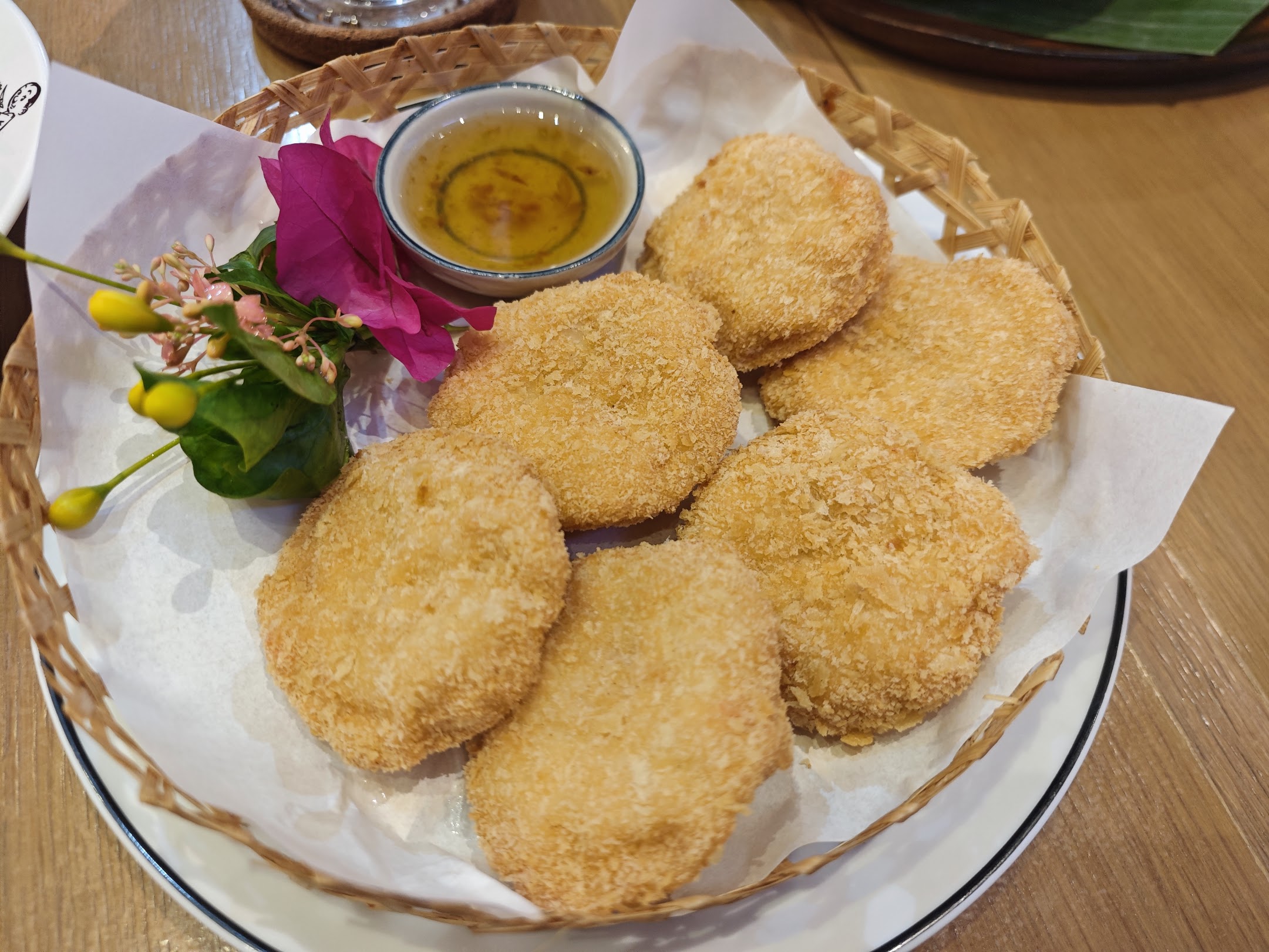 あと海老のすり身を揚げたやつも食べます。タイ料理の定番なのに食べたことがなかったので、今回はいちおう一回だけ食べてみるけど、どうせ想像通りの味だろうな・・・みたいな気持ちで注文しました。
