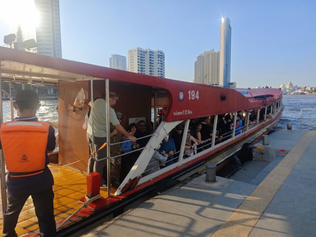 チャオプラヤーの水上バスで中華街に行きます。チャオプラヤーってめちゃくちゃいい川なんですよね。雄大に流れる川をいろんな船が行き来する様子は見ていてまったく飽きません。