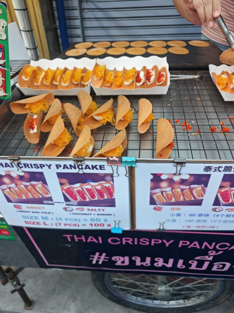 よくわからんお菓子を食べます。4個で60バーツ(300円)ですね。