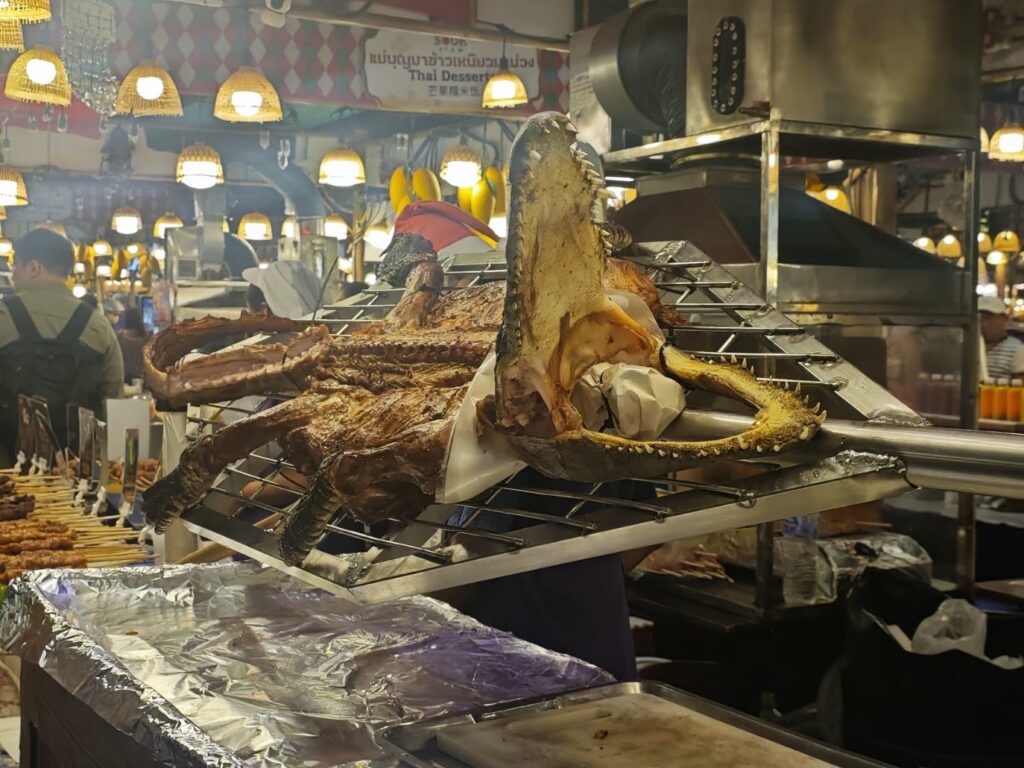 ここはフードコートがおもしろいんですよね~。今回はワニの肉を売ってる有名なお店にやってきました。