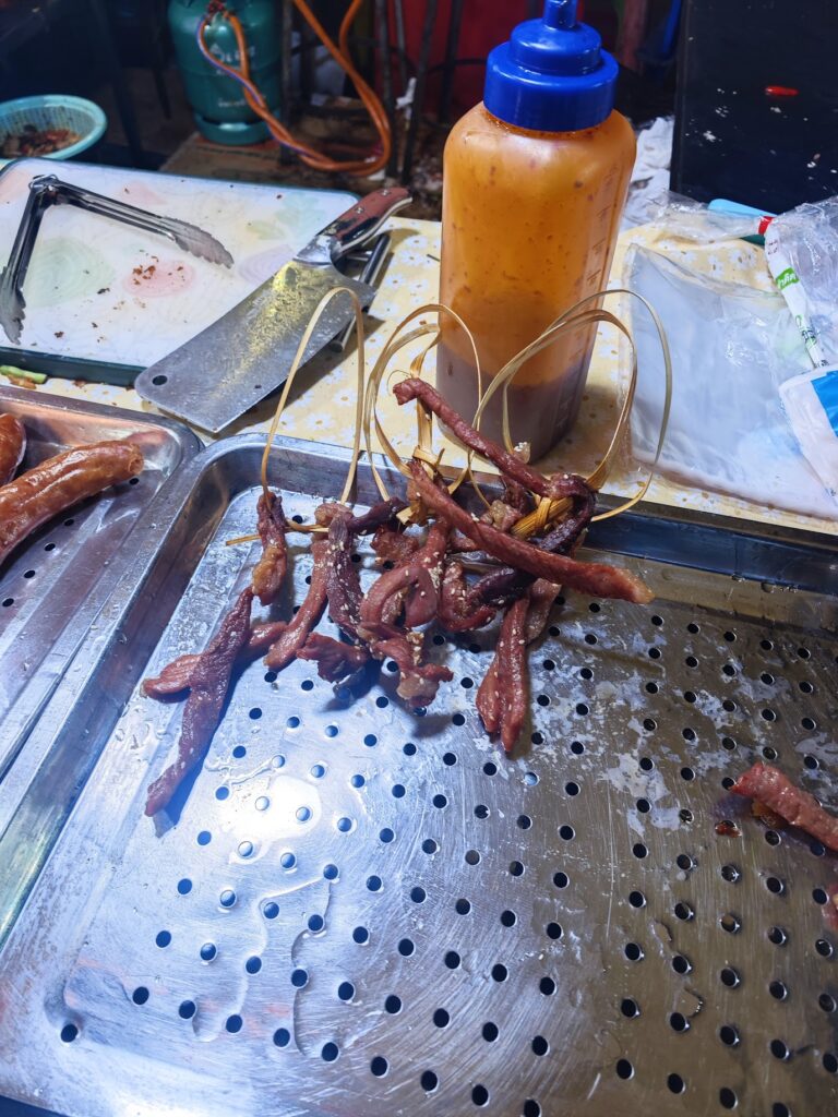 よくわからない屋台でよくわからない肉を買いました。食べてみたところビーフジャーキーでした。