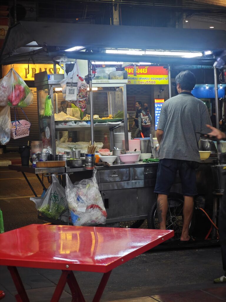タイラーメンを適当に注文したところ、ウェイターが近くの屋台に料理を作らせ始めて、結果的に屋台のメシを食うことになりました。美味しかったです。