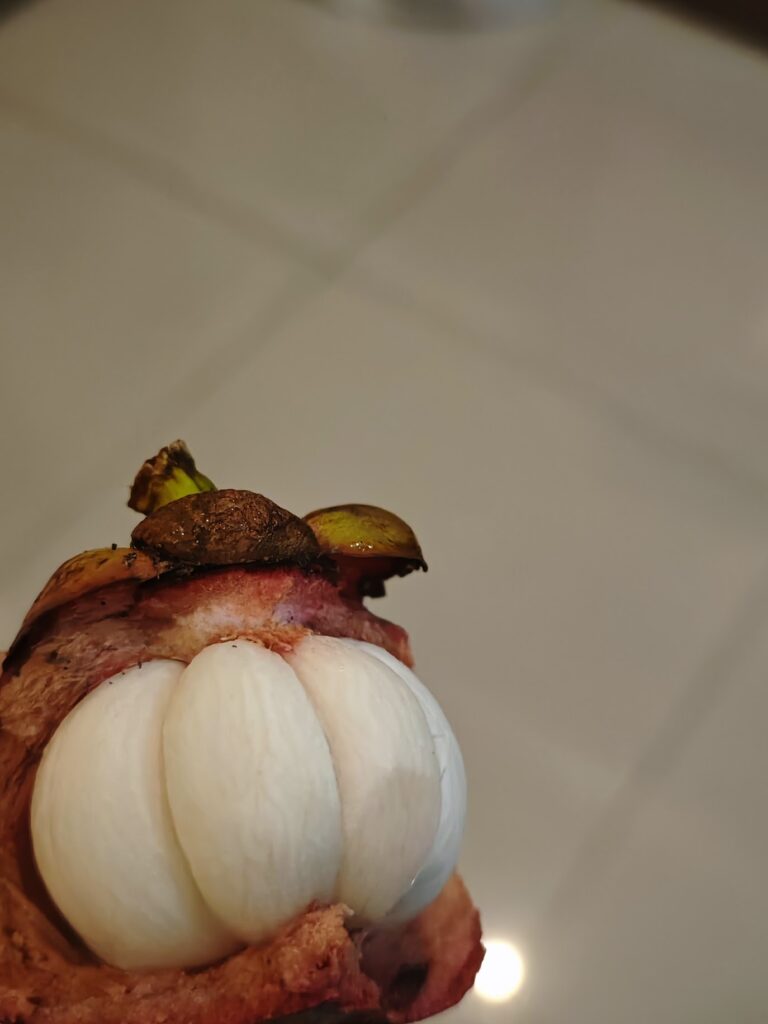 これはマンゴスチンですね~。世界一好きな果物です。まず見た目がかわいいです。ネコとかと同じで神がデザインしたとしか思えないキュートさです。