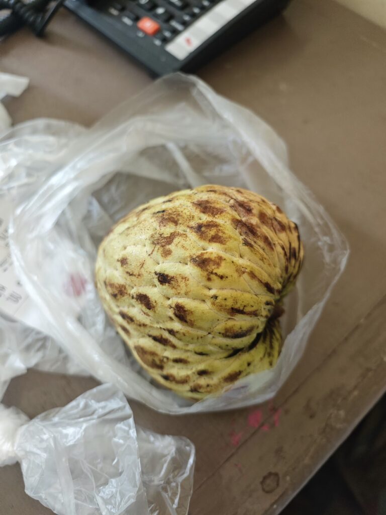 これはカスタードアップルってやつですね。かなり珍しいです。1個106バーツ(500円)するのでそこそこ高級でもあります。