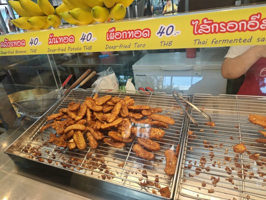 バナナを揚げたやつとかも食べます。バナナを揚げた味がしておいしかったです。