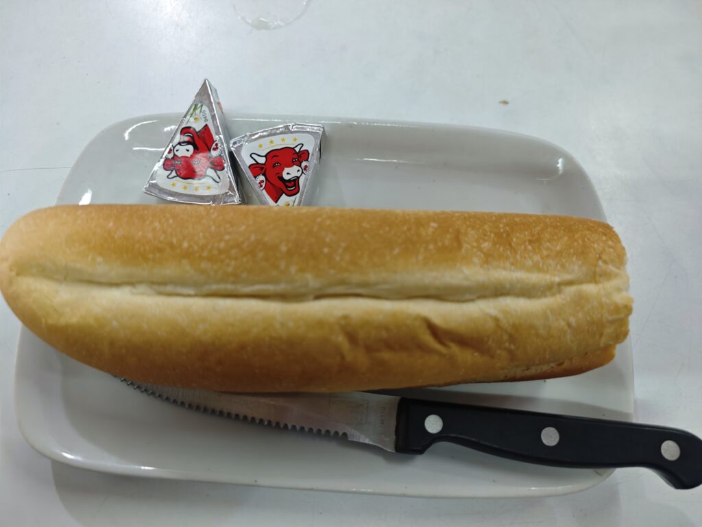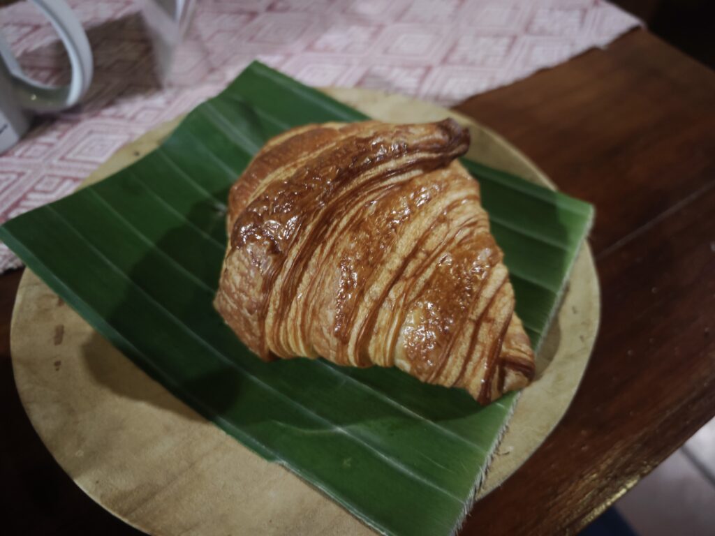 もう未知のものに触れたくないのでパンとカプチーノを選んだ。ラオスはフランスの植民地だった国だから、フランスを思わせるようなものがあちこちに売られている。クロワッサンもその一つだ。