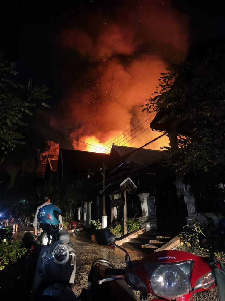 旅行でラオスのルアンパバーンに滞在していたところ、泊まっていたホテルの隣の家など7軒が燃える大火事に遭遇してしまいました・・・。