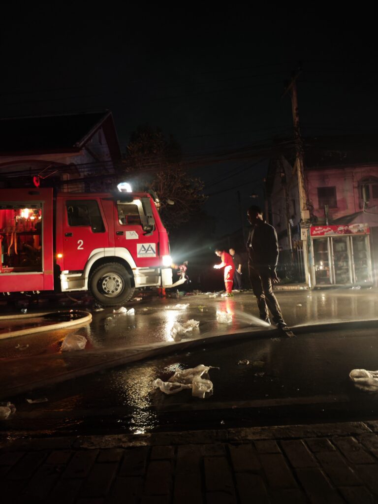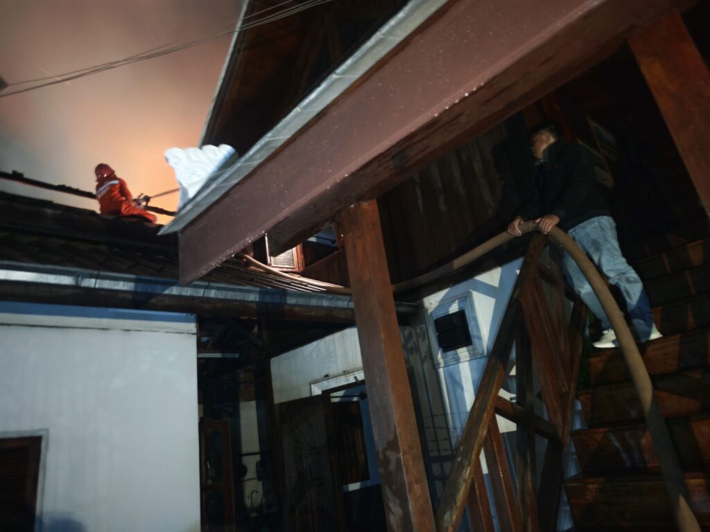 ホテルの隣の火災はだいぶ収まってきた。近所の住民らしき人が長い棒の先端にホースをくくりつけて水を送り込もうとしている。野次馬として写真を撮りながらも、壁を携帯とモバイルバッテリーの弱いライトで照らして微力ながら支援していたつもりだが、意味があったのかはよくわからないし、邪魔ですらあったかもしれない。